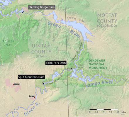 When it was designated as a protected area in 1915, Dinosaur National Monument confined the confluence of two of the Colorado River’s major and most magnificent tributaries—the Yampa and the Green Rivers. In the 1950’s, the fantastic palette of scenic, archaeological, and paleontological beauty in this remote corner of Colorado was still little known outside of the sparsely settled local communities. In the minds of the U.S. Bureau of Reclamation’s (BuRec) chief bureaucrats these characteristics offered them exactly what they were looking for to “hit another home run” like Hoover Dam had done decades earlier.