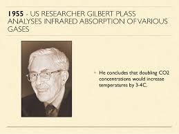 Several events significant to the history of Climate Change occurred in the 1950’s. First in 1955, climate researcher Gilbert Plass performed detailed computer analyses showing that doubling CO2 concentrations in the atmosphere would increase global temperatures by 3 to 4 degrees Celsius (5.4 to 7.2 degrees Fahrenheit).